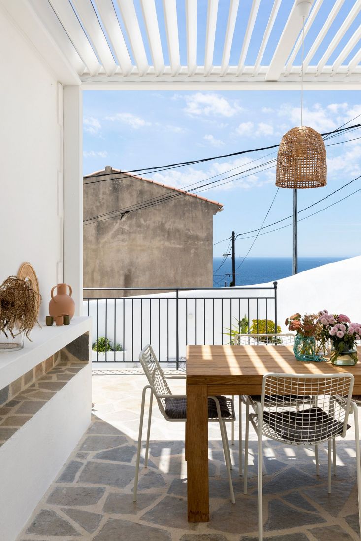 Sân hiên hiện đại và tinh tế khi sử dụng màu trắng là điểm nhấn.