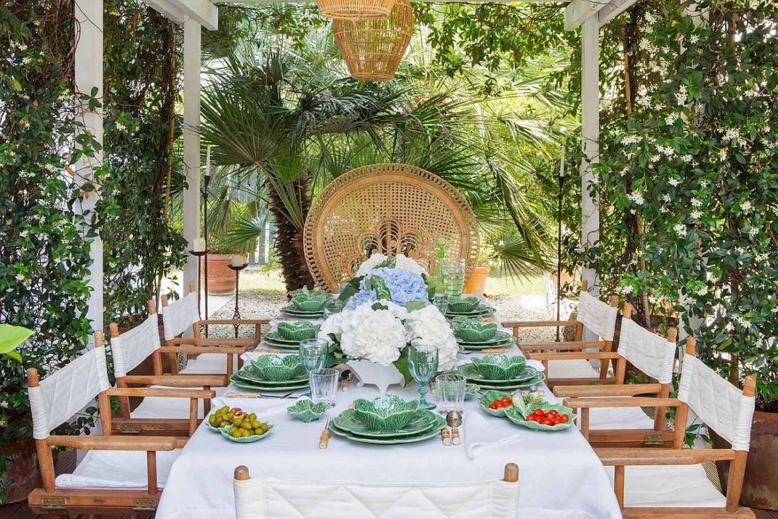 Khung cảnh đầy hấp dẫn với một bức tường màu xanh lá cây mang phong cách Địa Trung Hải.