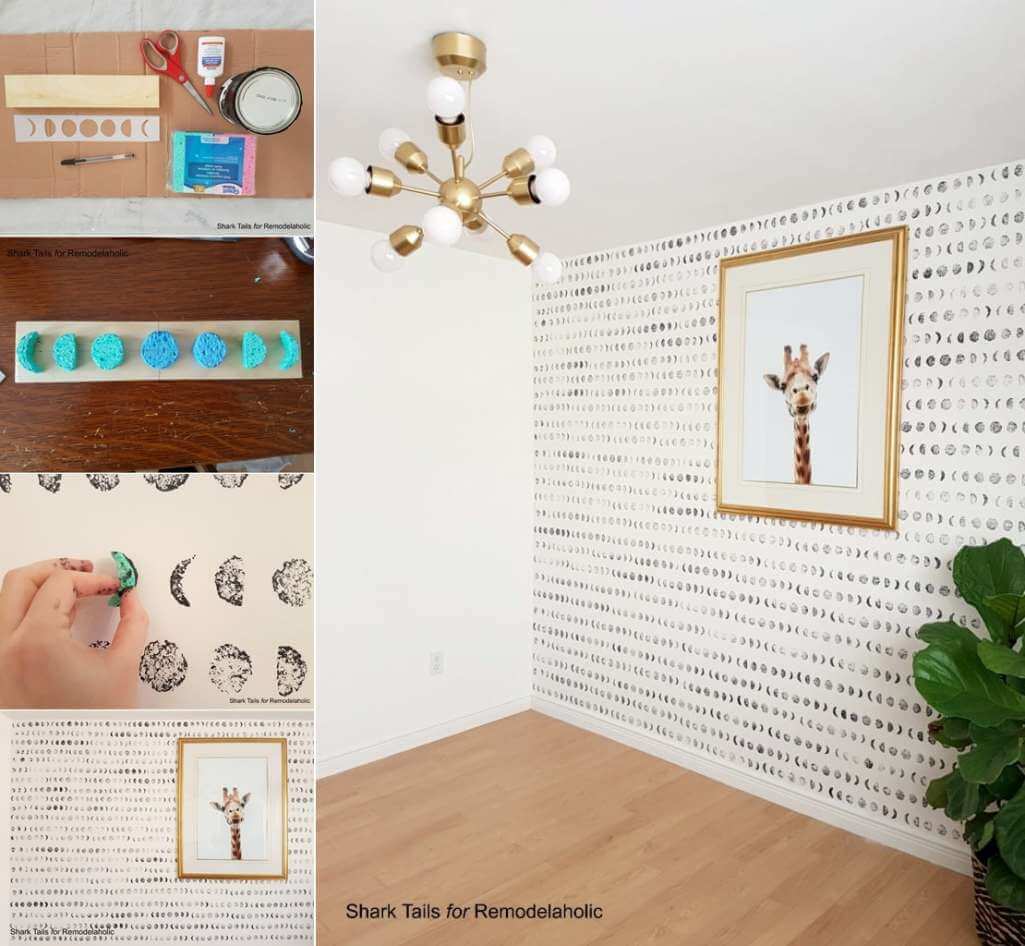Sử dụng hình mặt trăng để tạo một bức tường có dấu, bạn cần sự tỉ mẩn khi trang trí tường theo cách này.