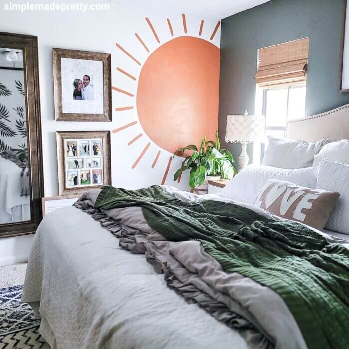 Sơn xương rồng trên tường, hài hòa với không gian mộc mạc của phòng ngủ.