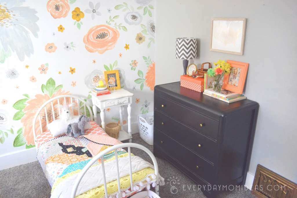 Sơn hoa với sắc thái nhẹ nhàng trên tường phòng ngủ cho bé yêu nhà bạn.