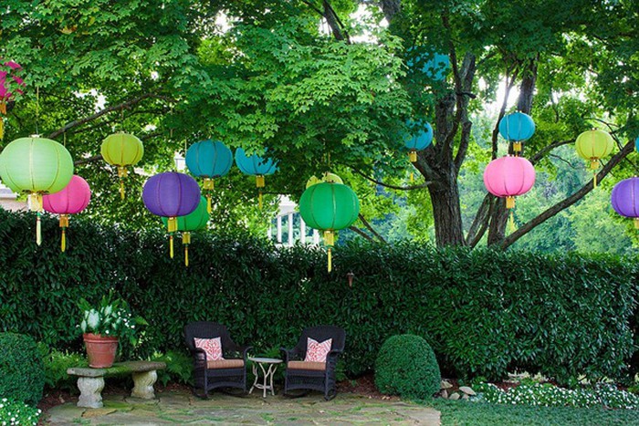Đầu tư hơn, bạn có thể sử dụng hàng rào bằng hoa hoặc treo đèn lồng cho khoảng sân trước nhà. Đèn có nhiều màu sắc, nhiều kích cỡ sẽ giúp ngôi nhà của bạn lung linh, huyền ảo khi đêm về.