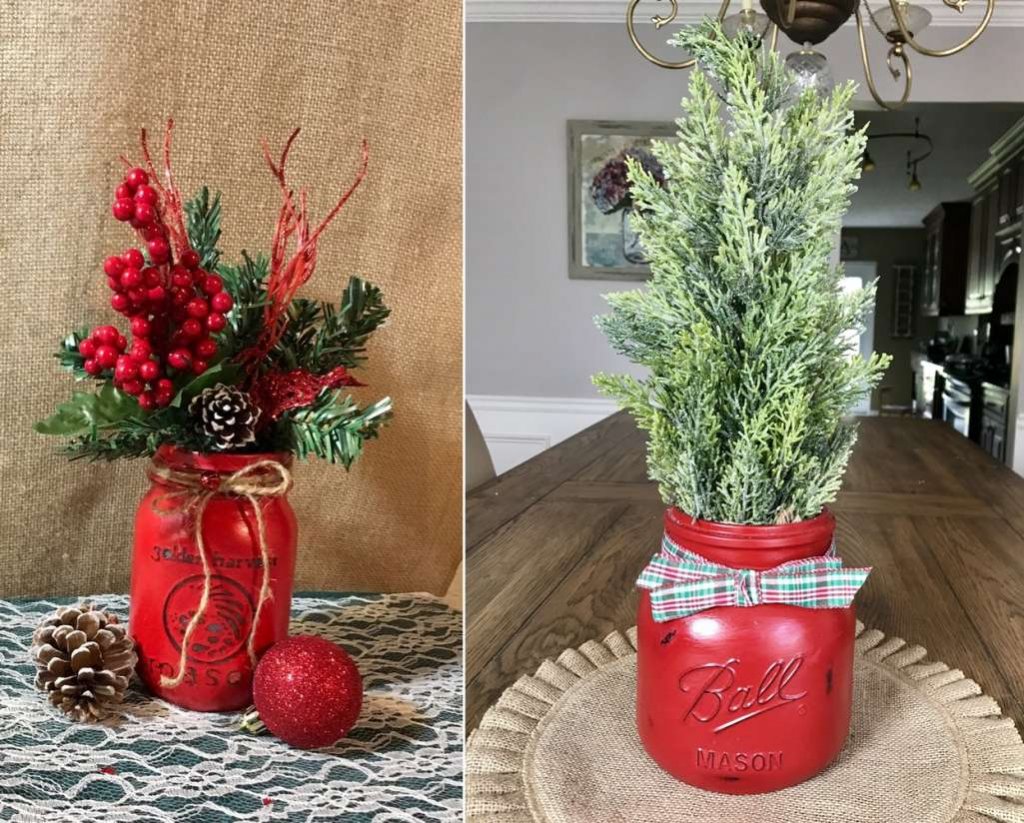 Với những cây thông, ngoài những hạt châu trang trí bạn có thể sử dụng những bông hồng đỏ. Đừng quên dùng dây đèn led lấp lánh để tô điểm.